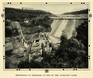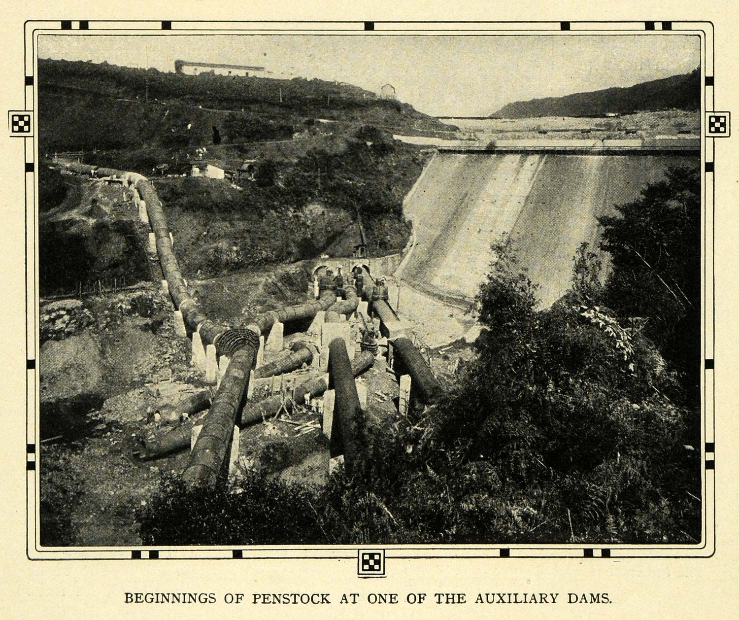 This is an original 1911 halftone print of the construction of penstock at one of the auxiliary dams.