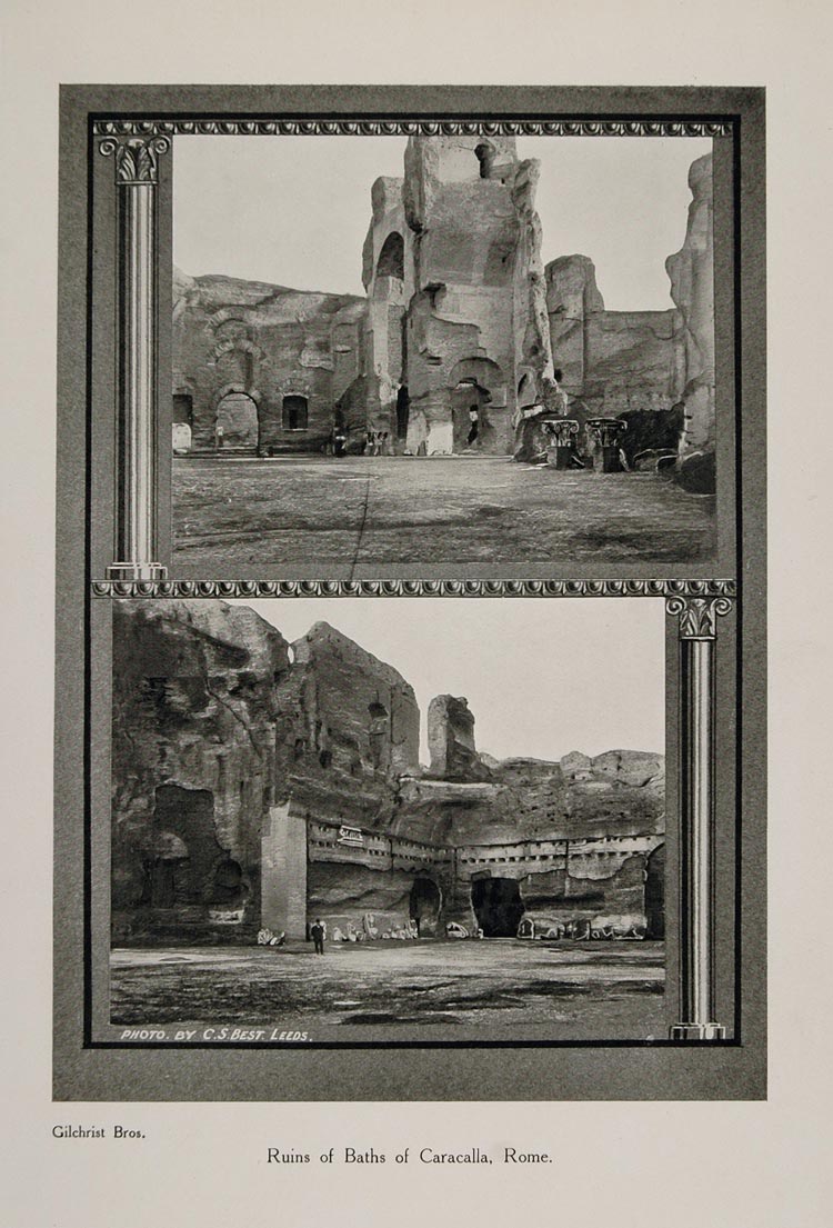 This is an original 1911 print from a photograph by C. S. Best of the famous Baths of Caracalla in Rome. Engraver: Gilchrist Bros.