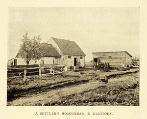 This is an original 1911 halftone print of a settler's home in Manitoba, Canada. Please note the dimensions of this image.