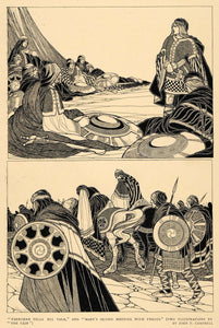 This is an original 1911 halftone print of "Faerdeah Tells His Tale," and "Maev's Second Meeting with Fergus," by John P. Campbell. Campbell was a native of Belfast, and sometimes signed his work under the name, "Seaghan MacCathmhaol". Please note there is printing on the reverse.