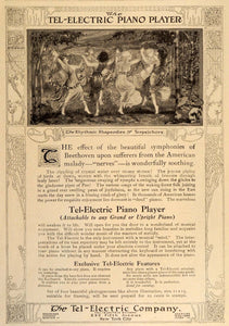 This is an original 1911 black and white print ad for the Tel-Electric Piano from The Tel-Electric Company, 299 Fifth Avenue, NYC.