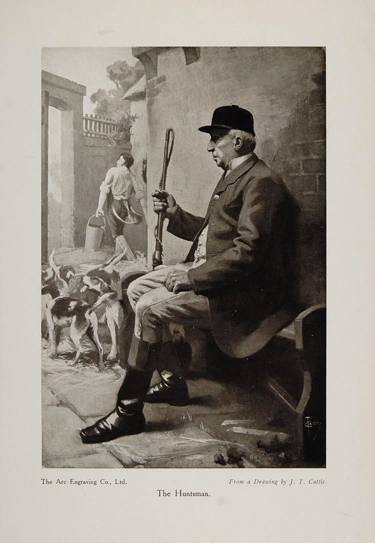 This is an original 1911 print from a drawing "The Huntsman" by J. T. Cattle. Engraver: The Arc Engraving Co., Ltd.