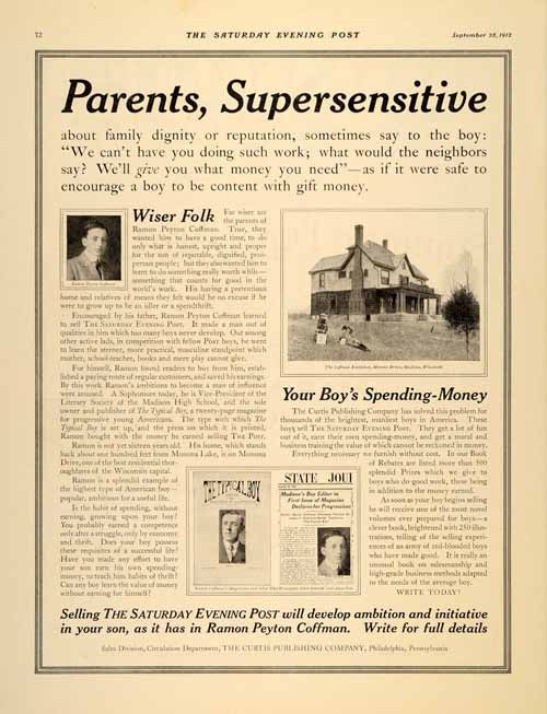 Keywords specific to this image: Saturday Evening Post, Ramon Peyton Coffman, Lake Monona, Wisconsin, Madison High School Vintage Advertising