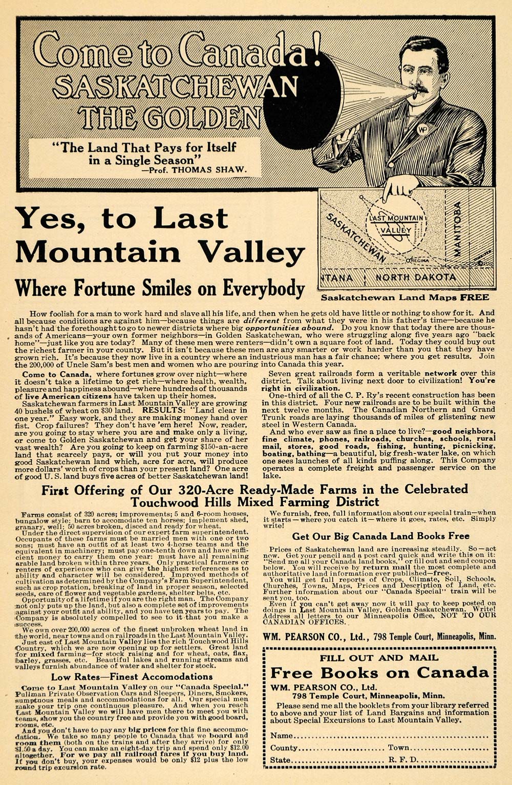 Keywords specific to this image: William Pearson, Touchwood Hills, Saskatchewan Land Maps, 789 Temple Court Minneapolis Minnesota Vintage Advertising