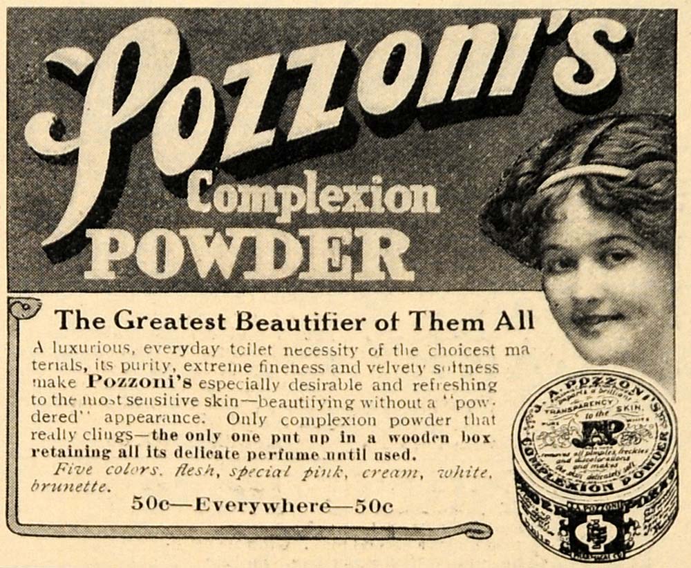 This is an original 1912 black and white print ad for Pozzoni's Complexion Powder.