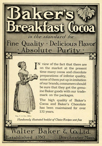 1912 Ad Walter Baker Baking Breakfast Cocoa Chocolate Maid Trademark Logo PM3