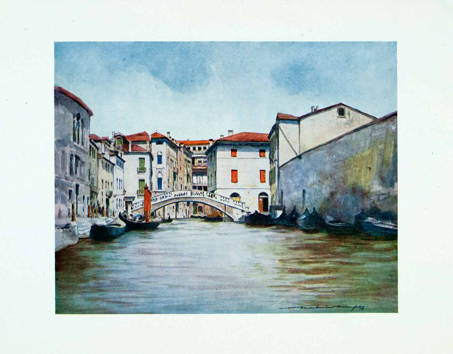 1912 Color Print Cityscape Canal Midday Sun Bridge Venice Italy Mortimer XGYA1