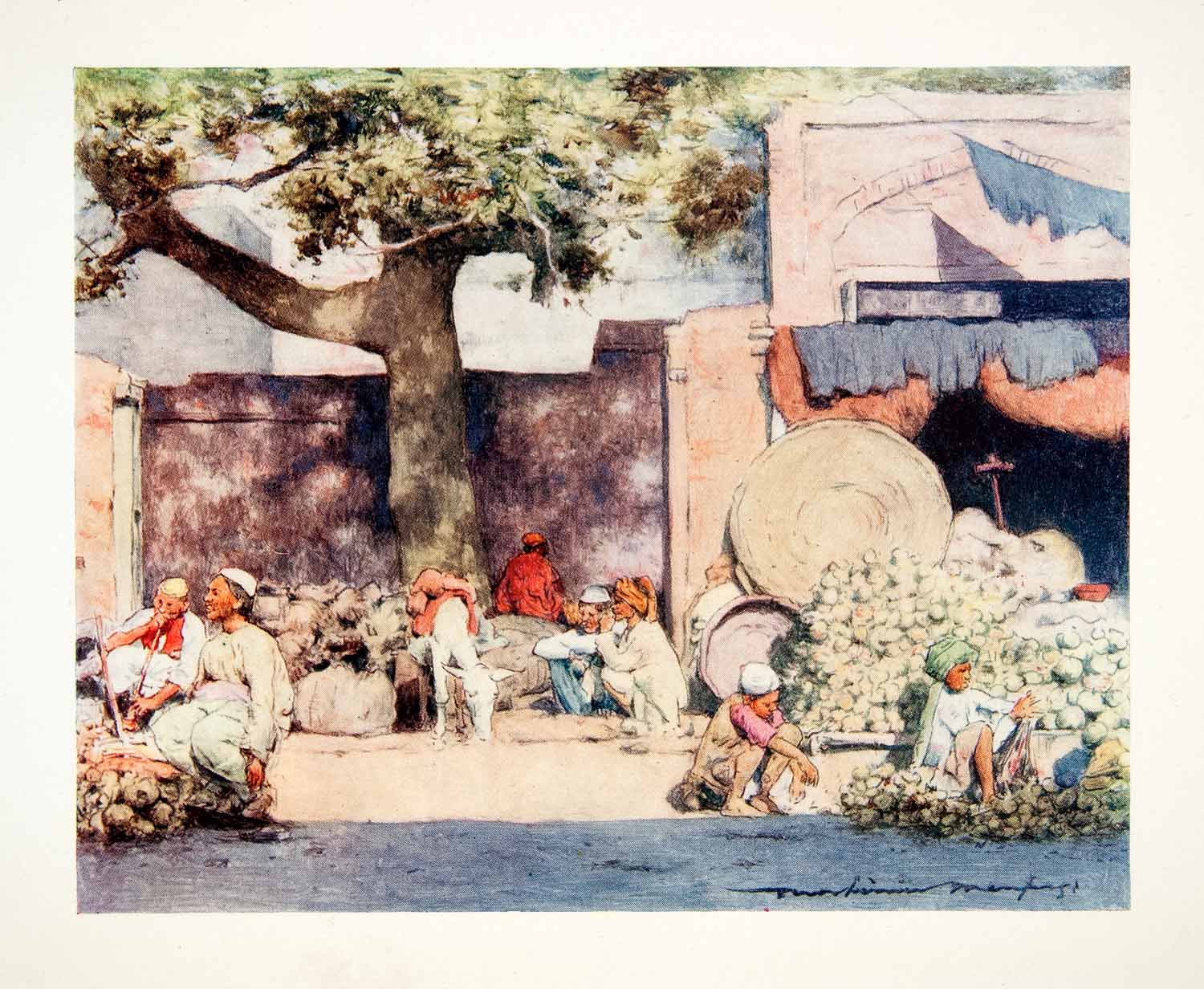 1912 Color Print Fruit Stalls Delhi Market Handicraft Cityscape Mortimer XGEB8