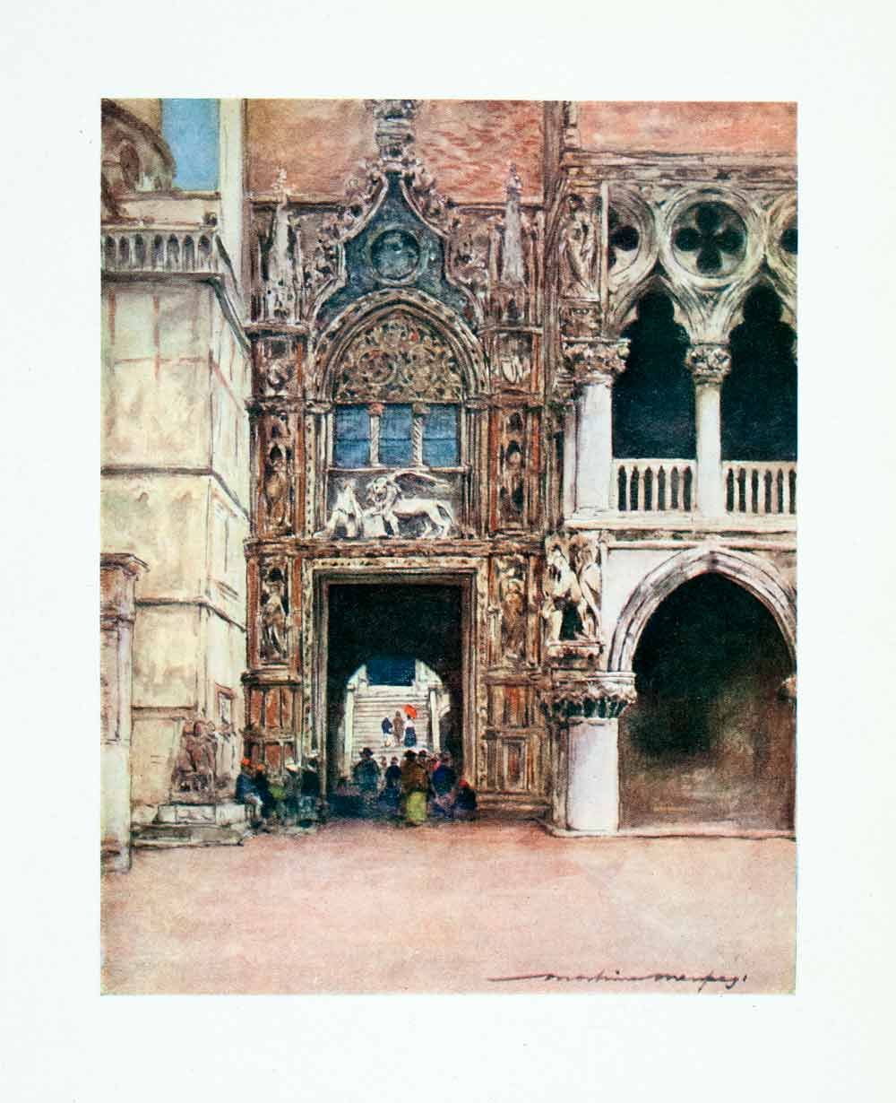 1912 Color Print Porta della Carta Doge Palace Venice Italy Mortimer XGYA1