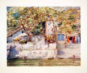 1912 Color Print River Steps Agra India Menpes Mortimer Luddington XGEB8