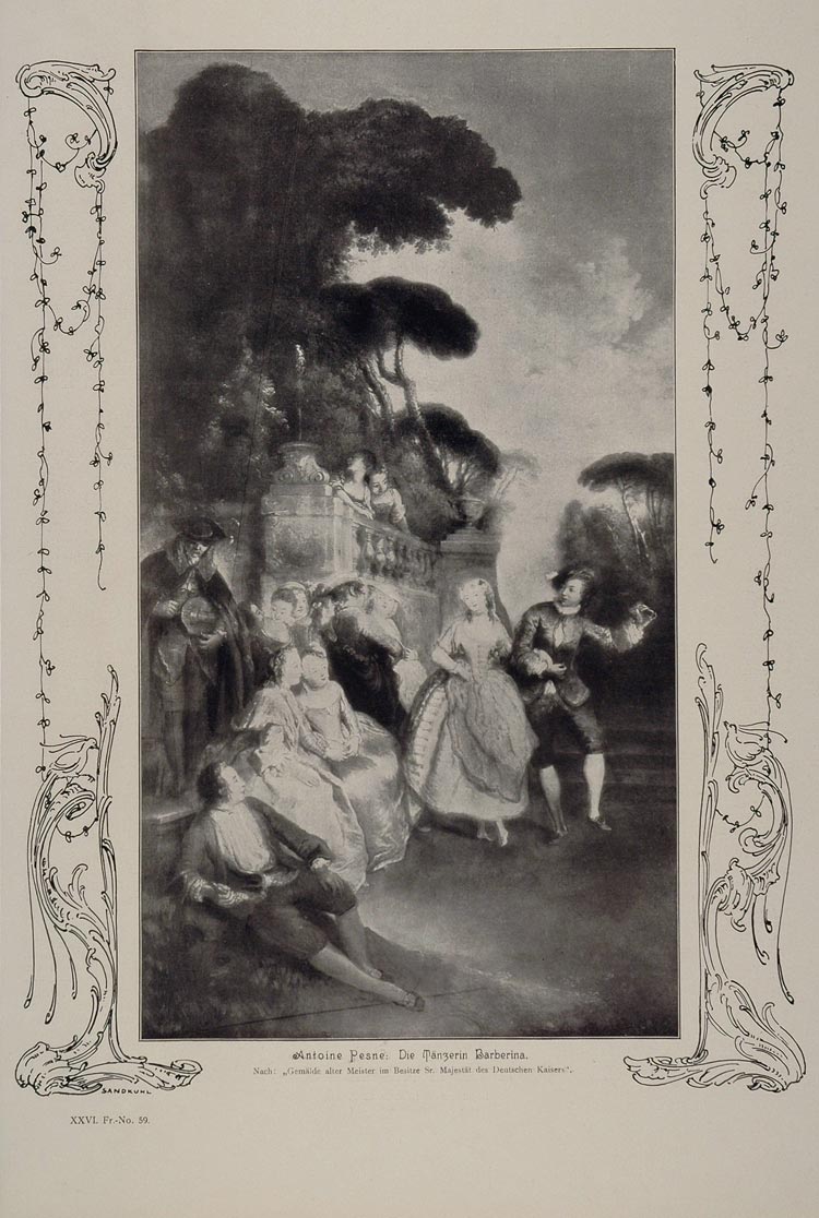 1912 Dancer Barberina Dancing Antoine Pesne Engraving - ORIGINAL