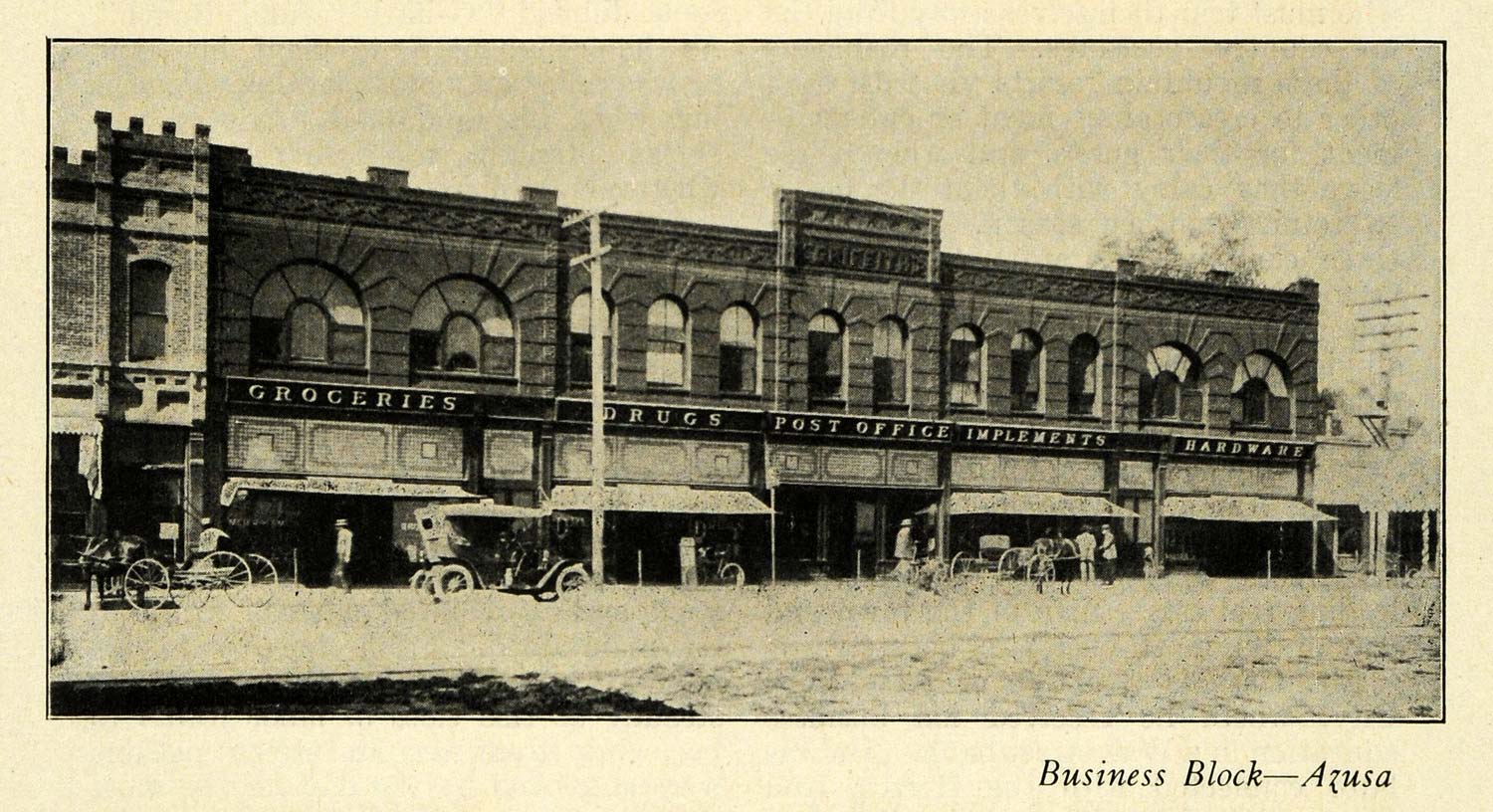 This is an original 1912 halftone print of the business district of Azusa, California.