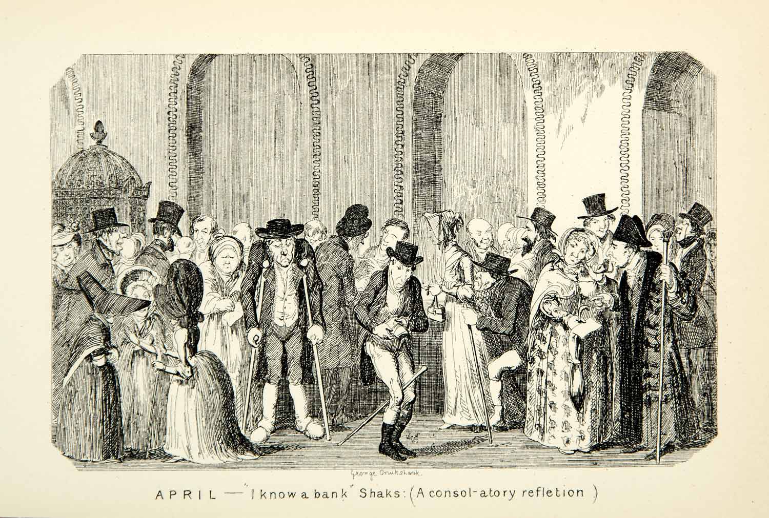 1912 Print Bank England April George Cruikshank Cartoon Humorous Funny XDJ7