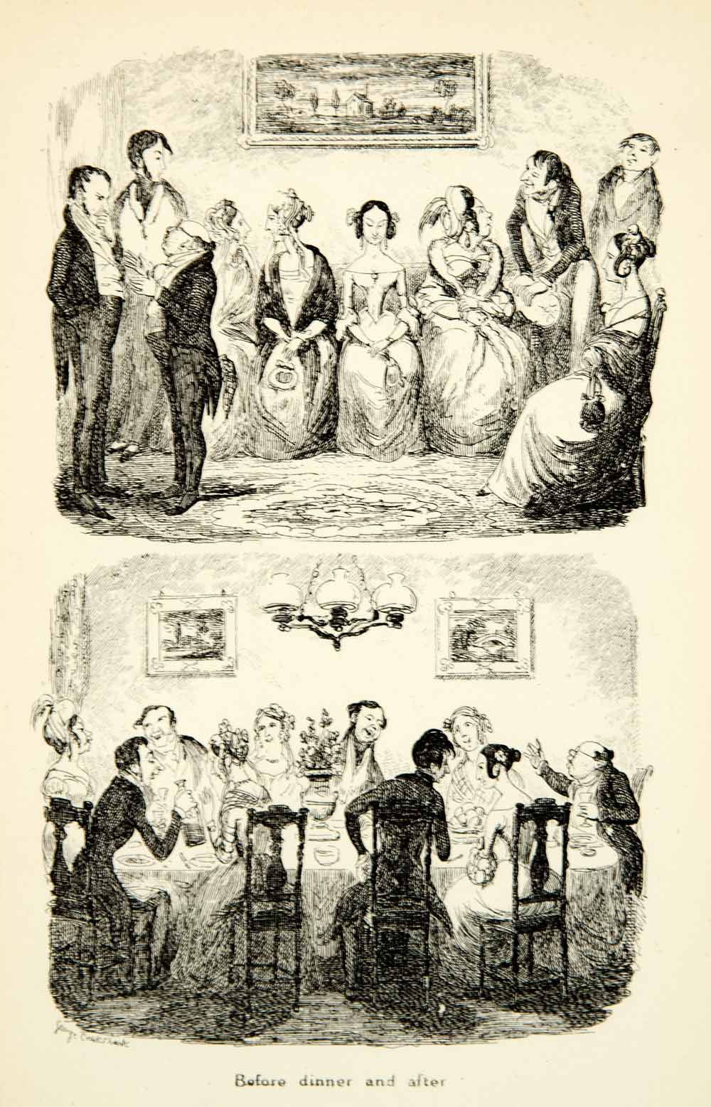 1912 Print Before After Dinner England George Cruikshank Guests Cartoon XDJ7