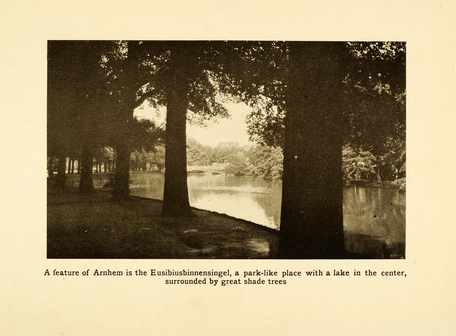 This is an original 1912 halftone print of Eusebiusbinnensingel in Arnhem, Holland.