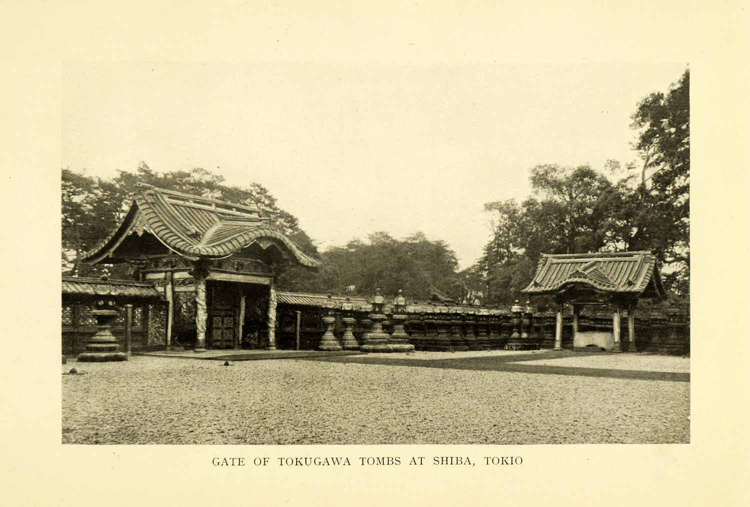 This is an original 1912 halftone print of the tombs where the Tokugawa family is interred. Still in Shiba, these tombs are gorgeous and reverential structures devoted to rest for the former ruling family of Japan.