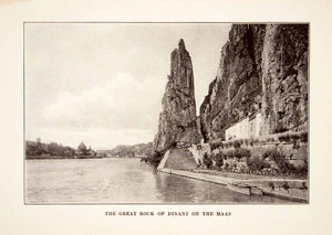 This is an original 1912 sepia halftone print of the great rock of the Walloon city of Dinant which is located on the River Meuse (Maas) in Belgium. Wallonia is a region in southern Belgium where the people mainly speak French.