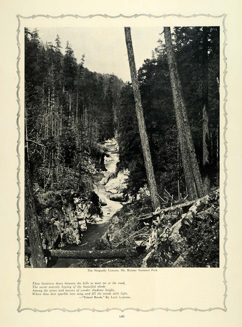 This is an original 1912 halftone print of The Nisqually Canyon in Mount Rainier National Park.