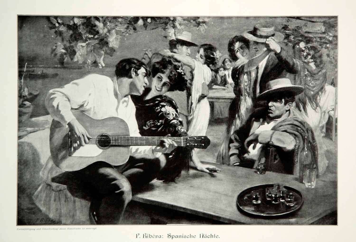 1912 Print Ribera Spanische Nachte Spanish Night Guitar Dance Dancers Music MK4