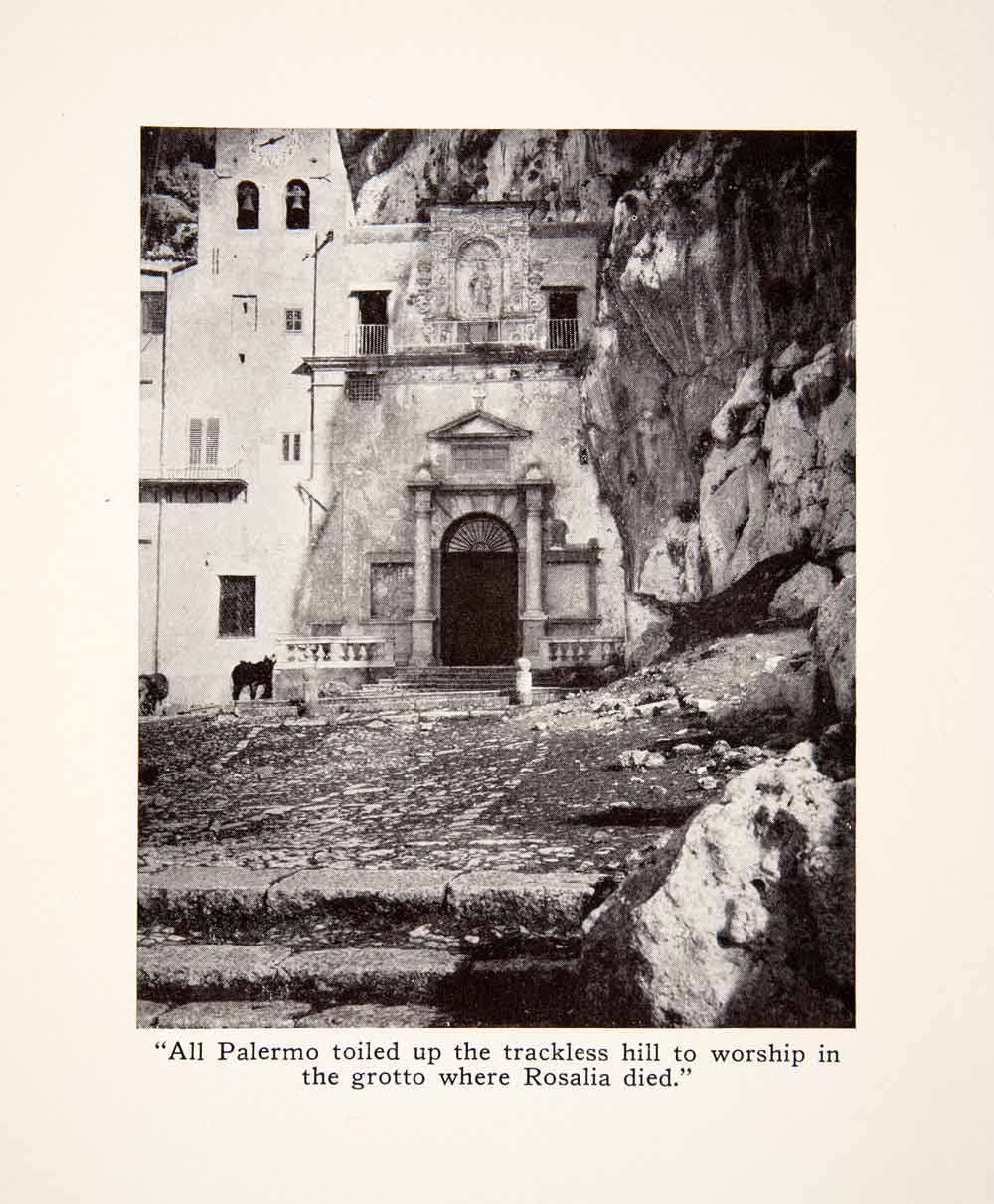 This is an original 1912 black and white halftone print of "Santa Rosalia's Grotto," in Sicily.