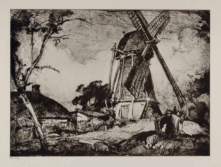 This is an original 1912 print of an etching by Frank Brangwyn: "Windmill, Dixmuden (Diksmuide)" (1908). The image measures 5.75 x 8 inches.