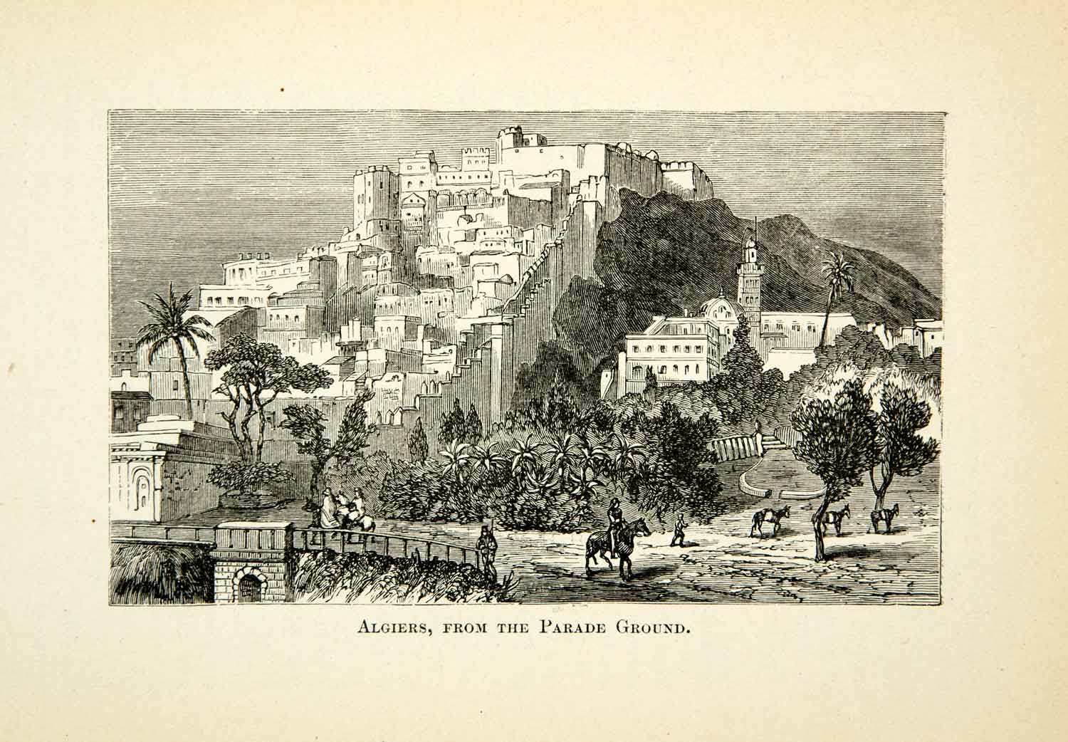 This is an original 1912 black and white in-text wood engraving of a cityscape of Algiers located in Algeria.