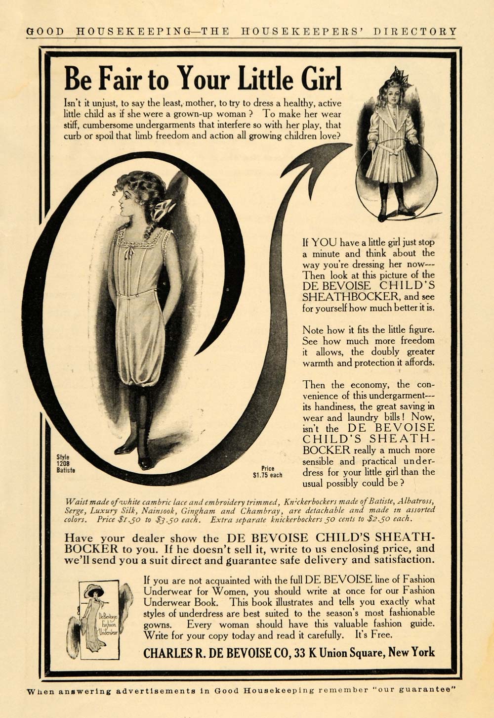 This is an original 1913 black and white print ad for the De Bevoise Child's Sheathbocker underwear from Charles R. De Bevoise Company located in New York.