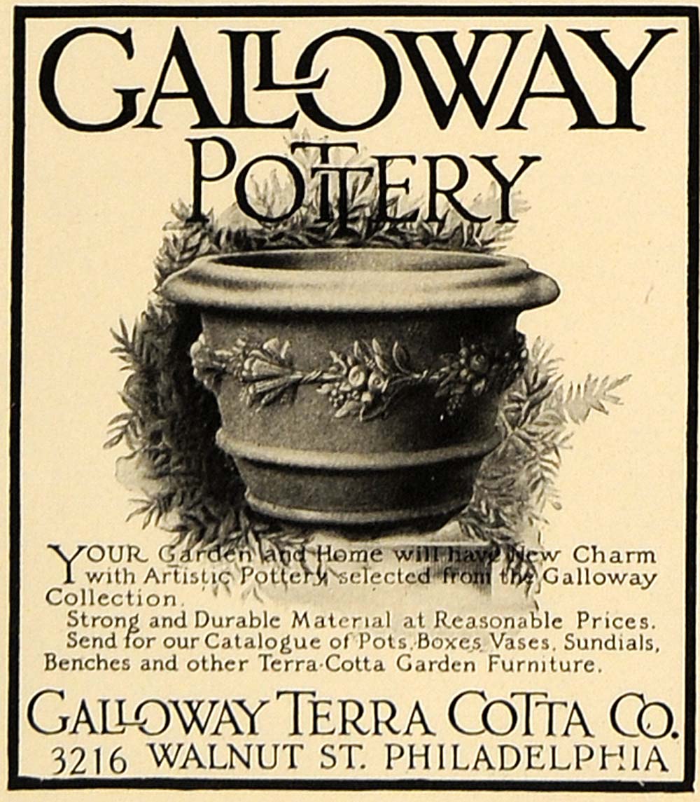 This is an original 1913 black and white print ad for Galloway Terra Cotta Pottery for the garden.