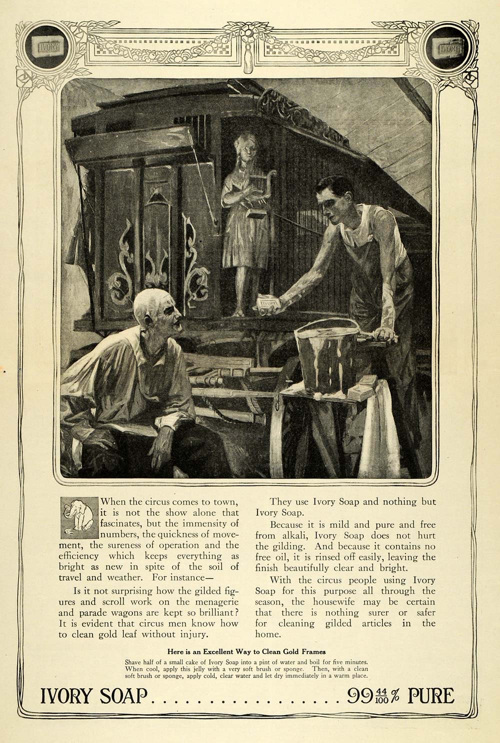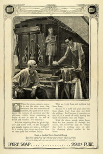 This is a rare original 1913 black and white print ad for Ivory Soap, featuring a frightening image of circus people.