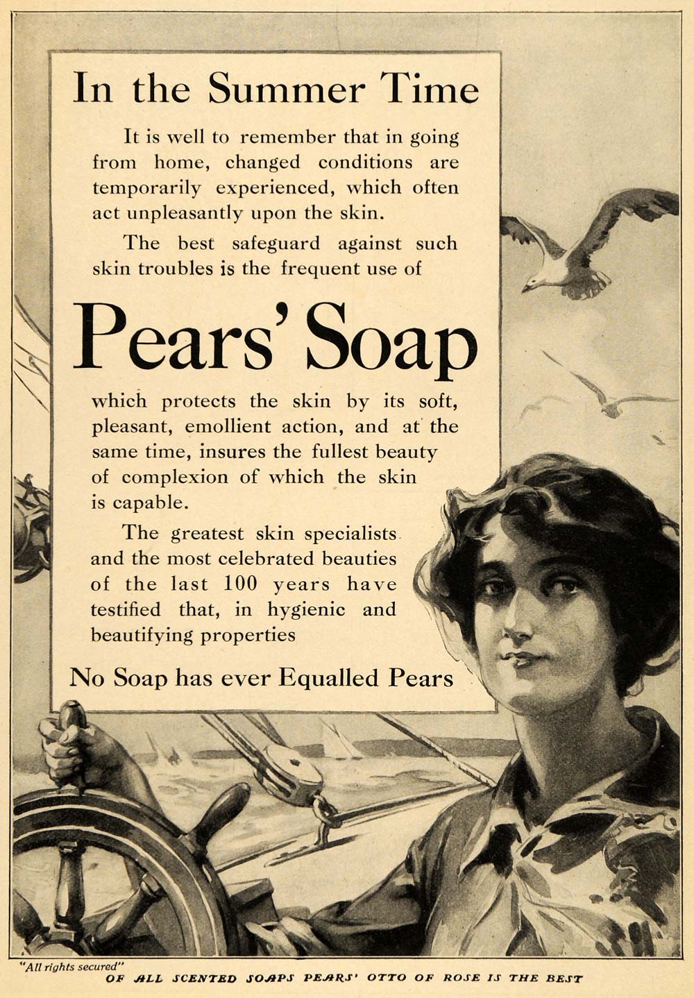 1913 Ad Pears Soap Skin Care Woman Sailing Sailboat - ORIGINAL ADVERTISING TIN4