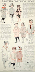This is an original 1913 two-color print of Edwardian fashions for children. Note the dropped waists that were typical of the period.