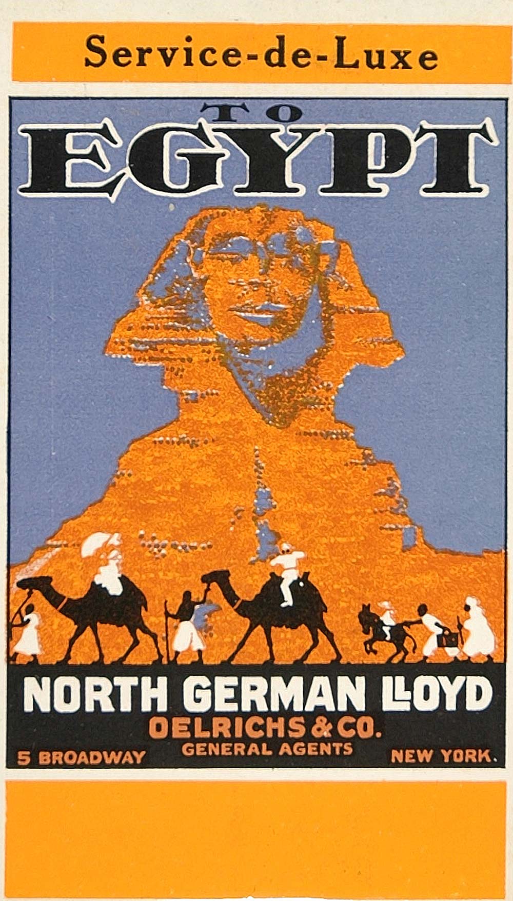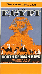 This is an original 1913 four-color lithograph of an advertising poster for travel to Egypt via North German Lloyd. Designed by the International Art Service of New York and executed by Monroe and Hartford, New York.