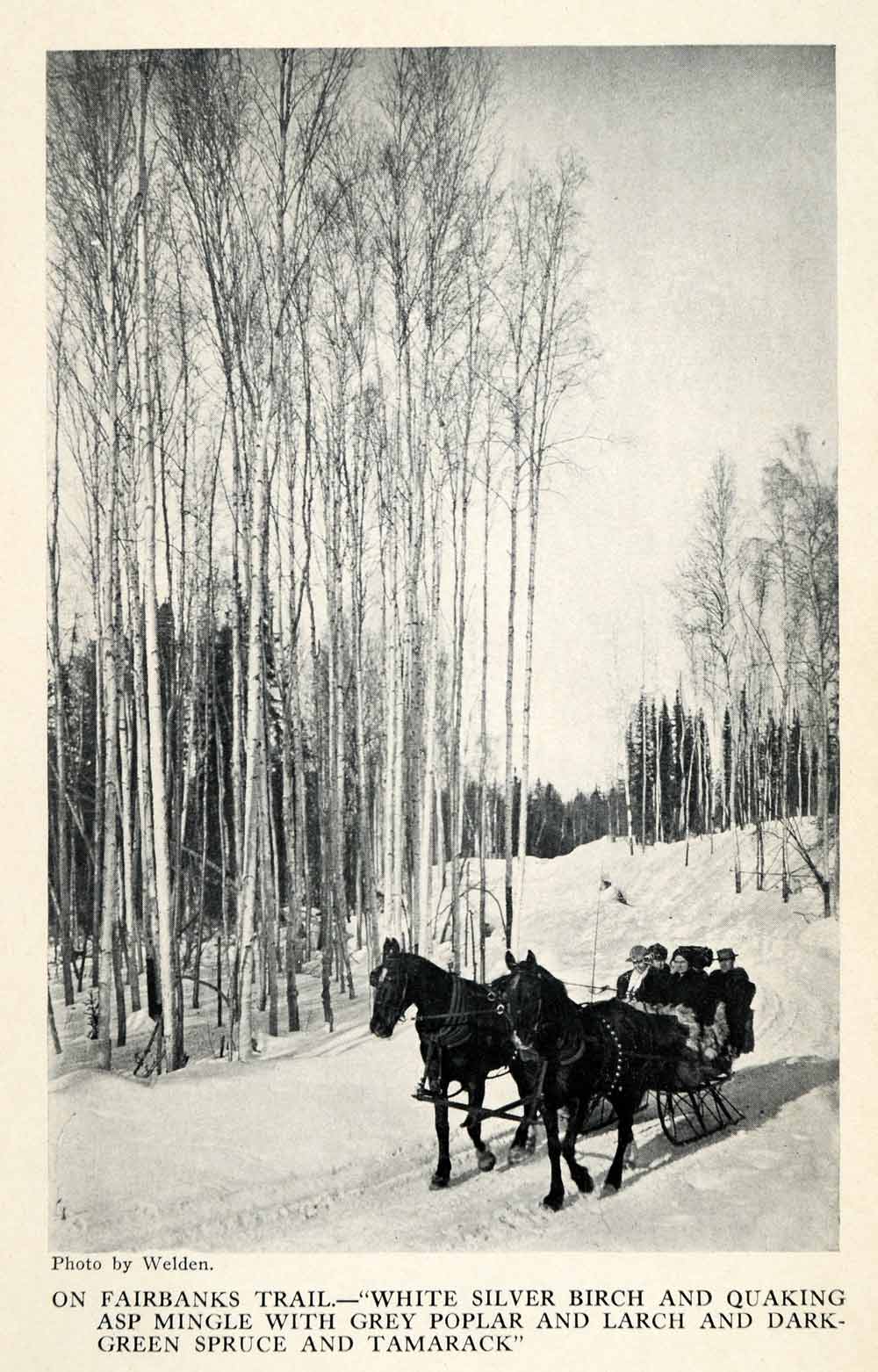 This is an original 1913 black and white halftone print titled, "Going for a Sleighride On Fairbanks Trail in Alaska."