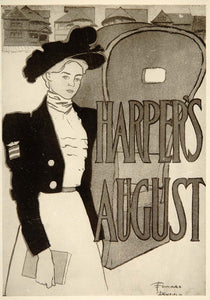 This is an original 1913 hand-tipped, halftone print of a cover, designed by Edward Penfield, for Harper's Magazine, August, n.d.