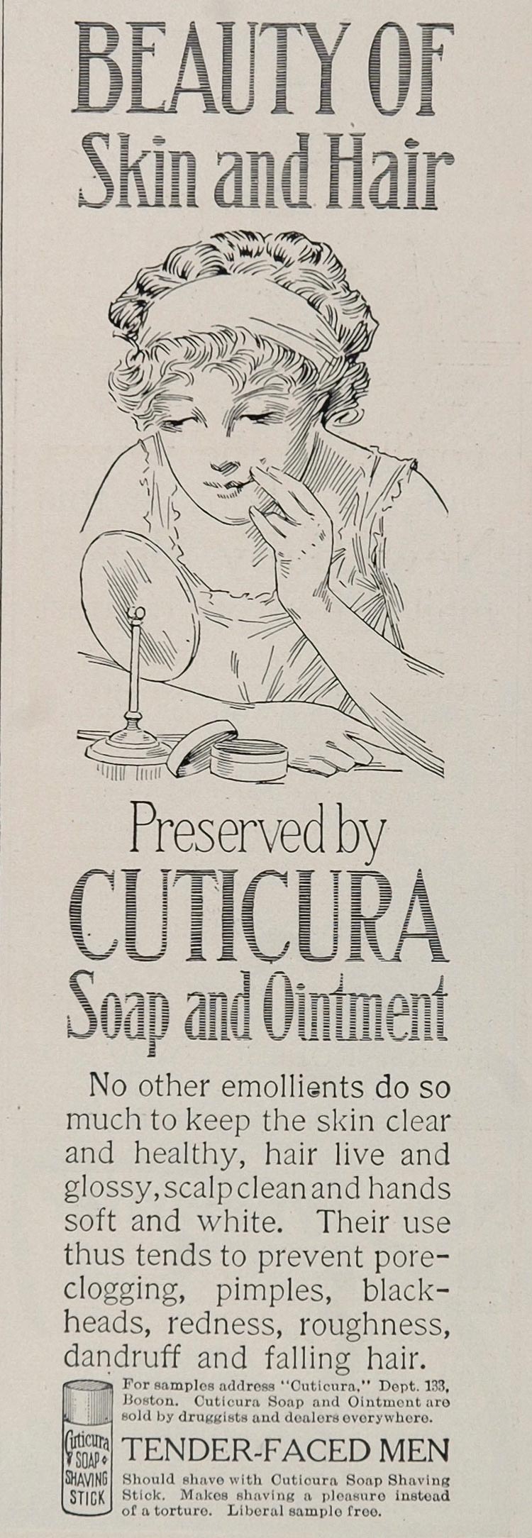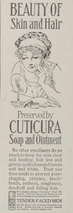 This is an original 1913 black and white print ad for Cuticura Soap and Ointment.