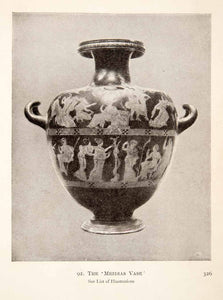 This is an original 1913 black and white halftone print of the Meidias Vase, thought to have been painted by Meidias, who was an Athenian Red-Figure Vase painter.