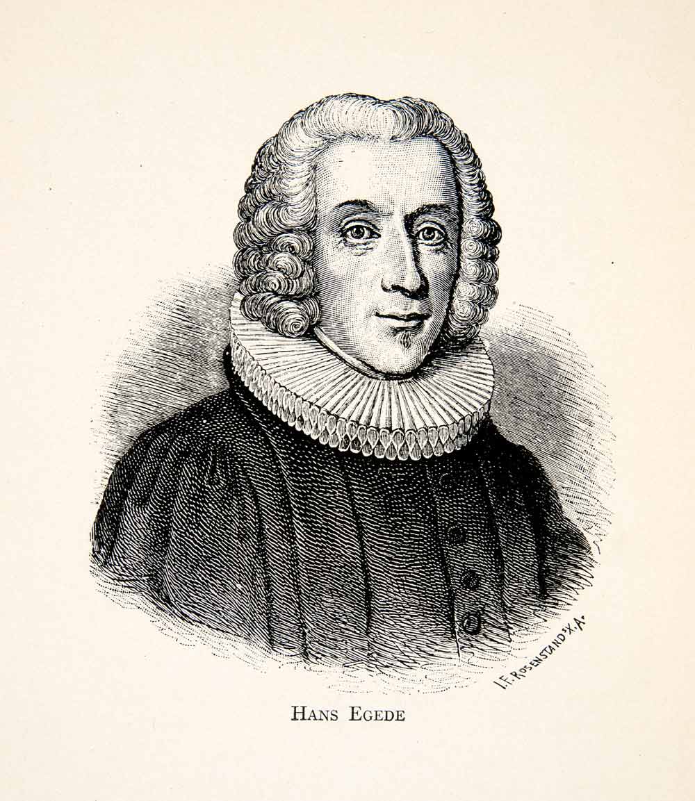 This is an original 1913 black and white relief line-block print of Hans Egede, who was a Norwegian-Danish Lutheran Missionary, who led a successful mission to the Inuit.