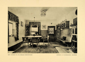 This is an original 1913 halftone print of Landhaus am Starnbergersee: Eszzimmer by Theodor Veil. Veil was a German architect and university lecturer. He was born in India, but grew up in Germany. He studied architecture at the Technical University of Munich under the professor Friedrich von Thiersch, Carl Hocheder and Gabriel von Seidl. He began his work in the Art Nouveau style.