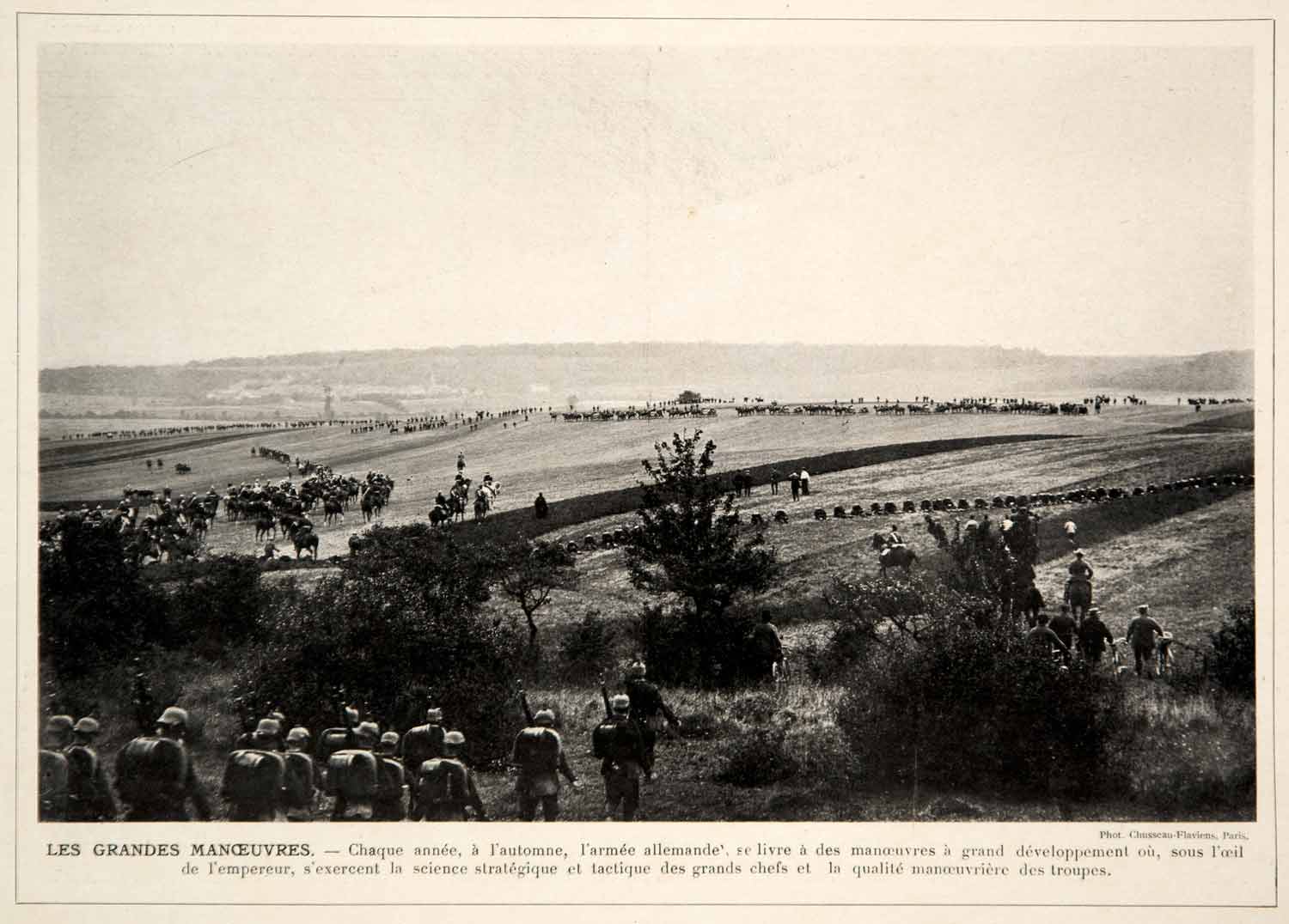This is an original 1913 black and white halftone print of the Imperial German Army engaging in military maneuvers.