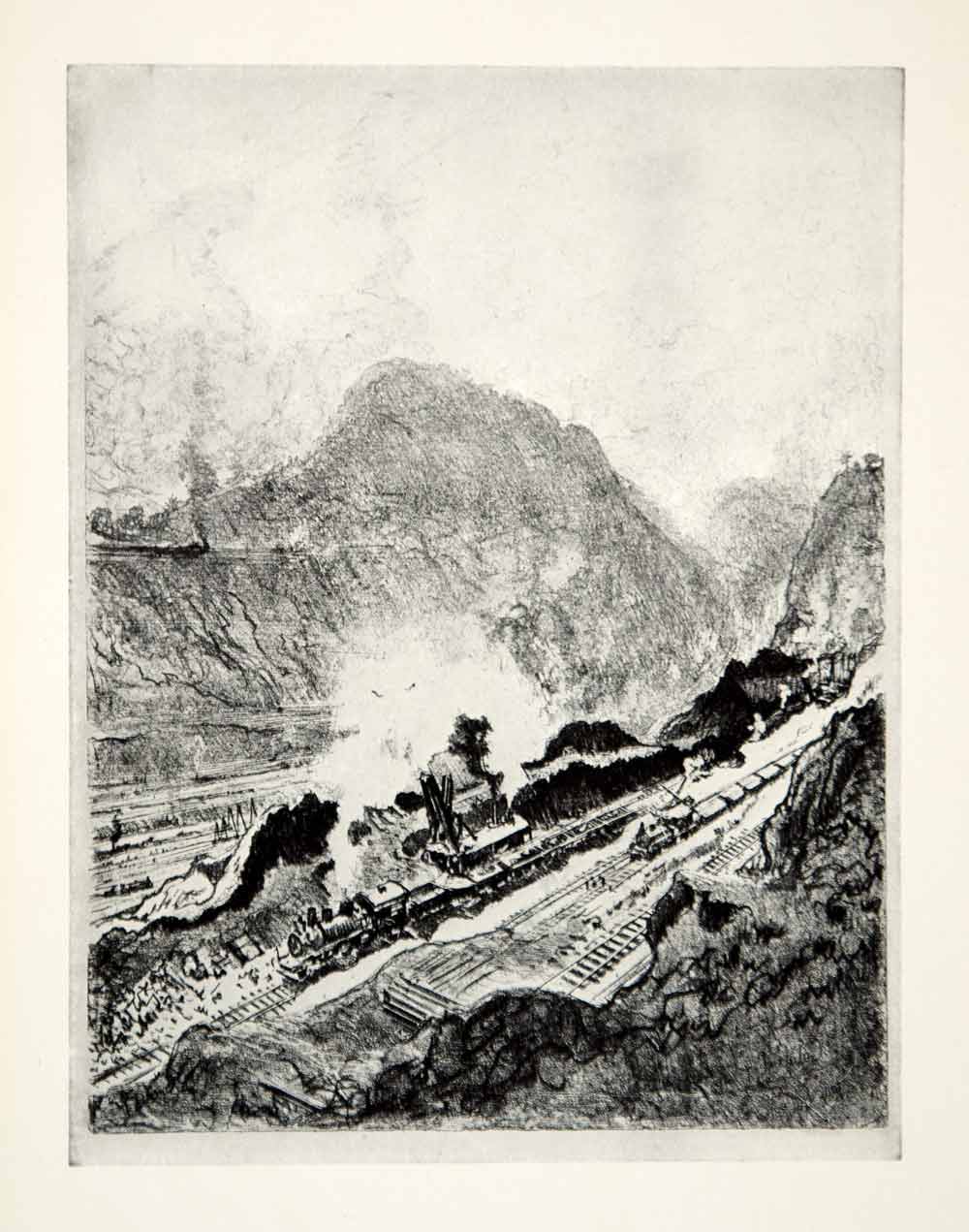 1913 Print Joseph Pennell Art Gold Hill Panama Canal Railroad South XAOA2