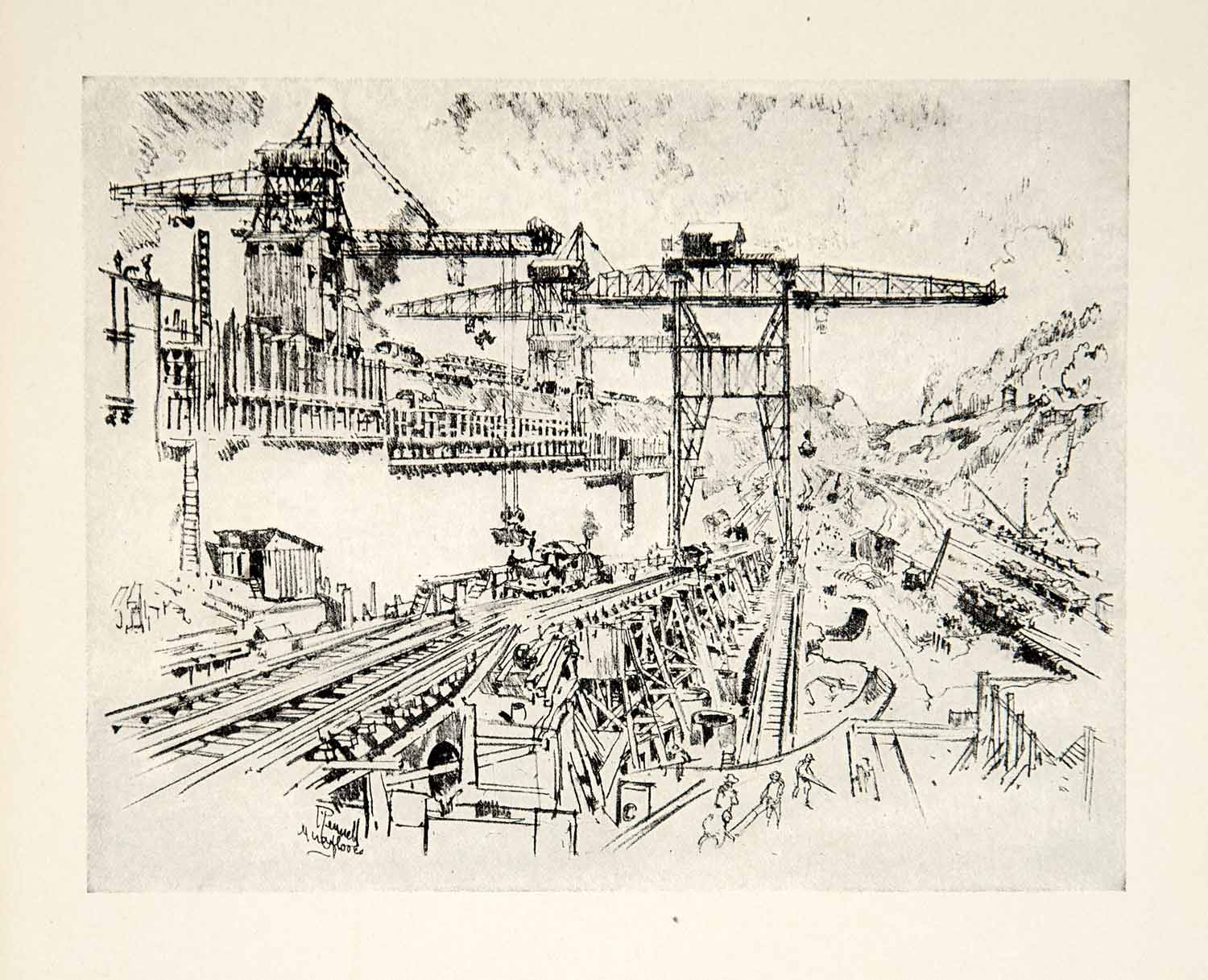 1913 Print Joseph Pennell Art Miraflores Lock Panama Canal Construction XAOA2
