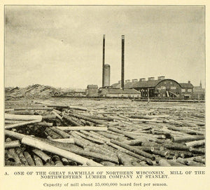 This is an original 1913 halftone print of the Northwestern Lumber Company sawmill in Stanley, Chippewa County, Wisconsin.