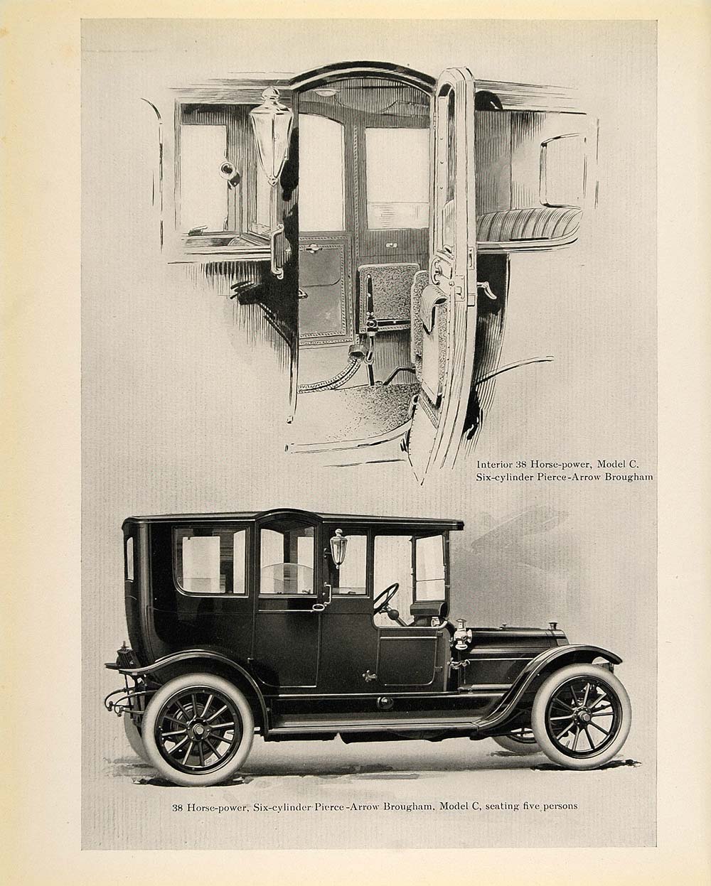 This is an original 1913 halftone print of an advertising illustration for the 38 Horse-power Six-cylinder Pierce-Arrow Brougham, Model C automobile, seating five persons. (Please note that there is printing on the reverse.)