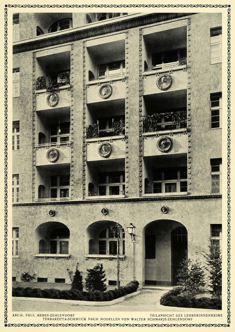 This is an original 1913 halftone print of Teilansicht Des Lehrerinnenheims Terrakotta-Schmuck Nach Modellen Von Walter Schmarje-Zehlendorf by Paul Mebes-Zehlendorf.