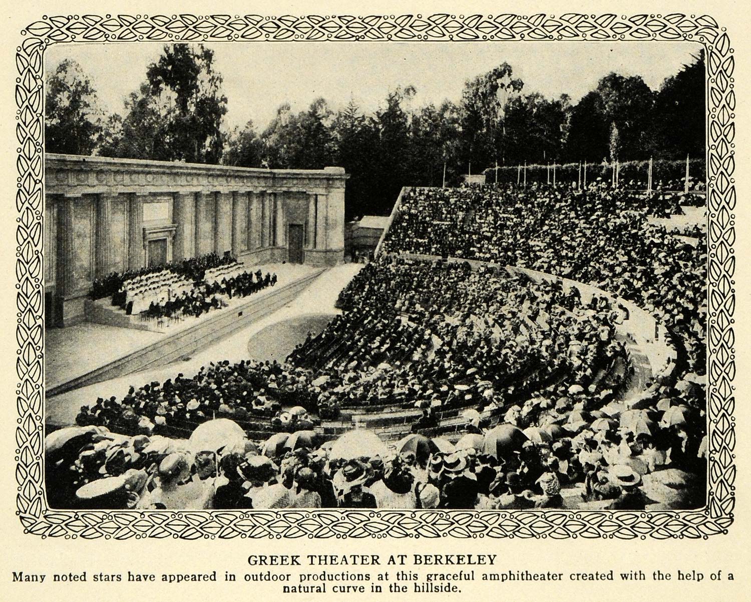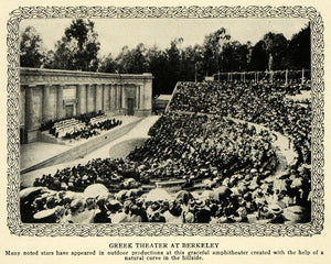 This is an original 1913 halftone print of the Greek Amphitheater at the University of California Berkeley.