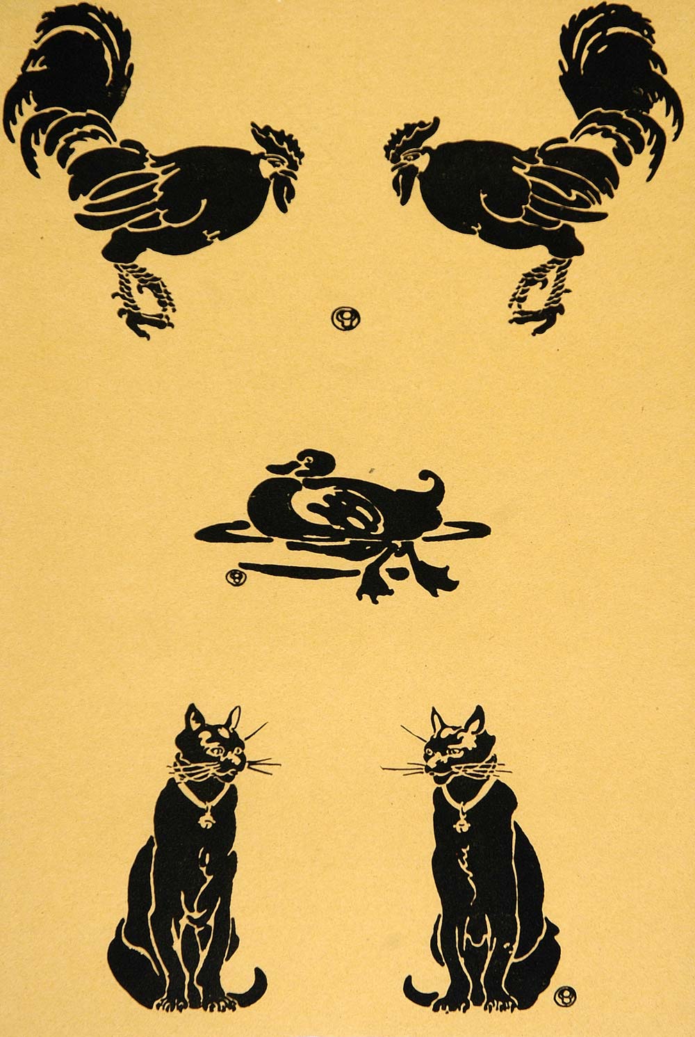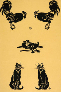 1913 Rooster Cock Duck Cats Edward Penfield Mini Poster - ORIGINAL CB1