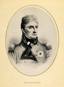 This is an original 1913 tipped-in halftone print of Glasgow-born British solider Sir John Moore. Born in 1761, his list of military skirmishes was extensive. In addition to fighting in the American War of Independence, he also campaigned in Corsica, the West Indes, and he is credited with preventing the sacking of Wexford, Ireland, by gaining control of it during the Irish Rebellion of 1798.