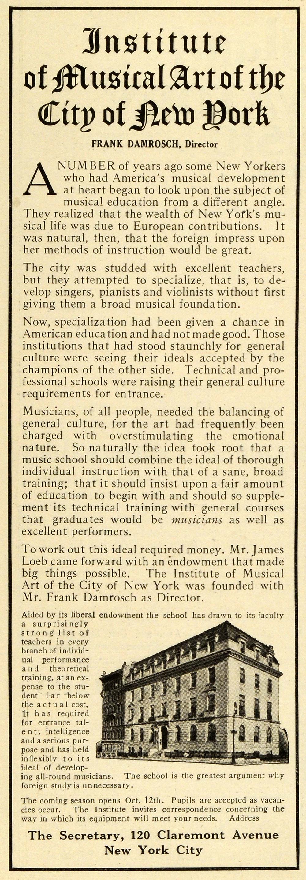 1914 Ad Institute Musical Art New York Juilliard School Director Frank CSM1