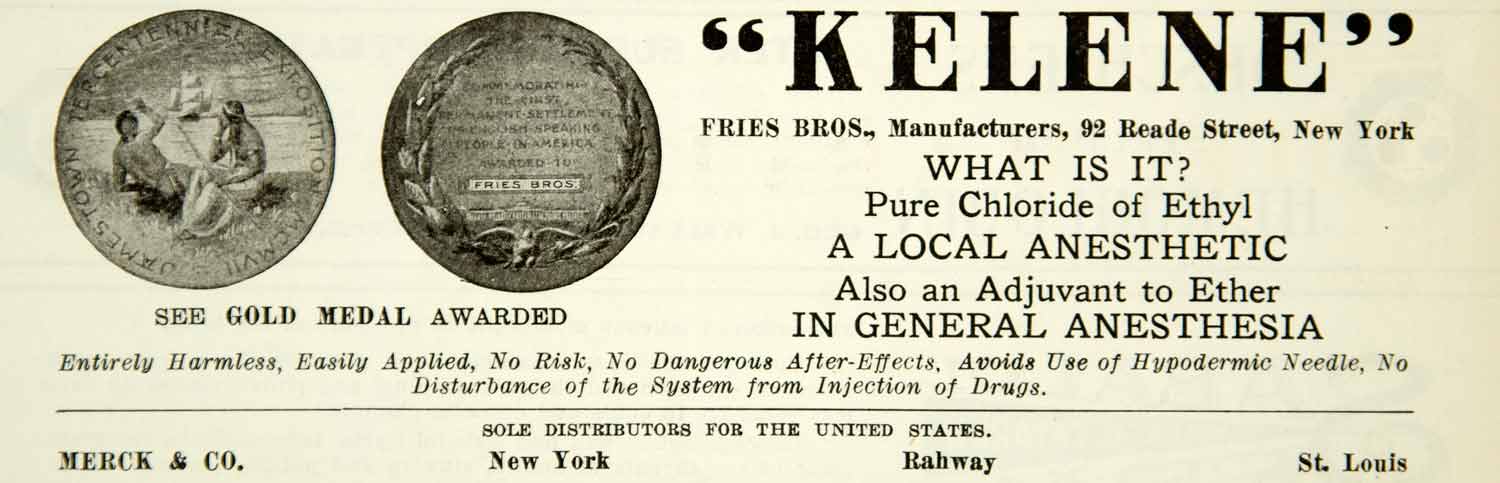 Keywords specific to this image: Vintage Advertising, Brothers, Street, New York, Chloride, Ethyl, Doctor, Physician, Hospital, Clinic, Treatment, Cure, Surgery, Anesthesia, Druggist, Pharmacy, Operation, Health
