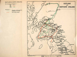 1914 Lithograph Map Scotland Northern England Edward Campaigns Borders XEC2